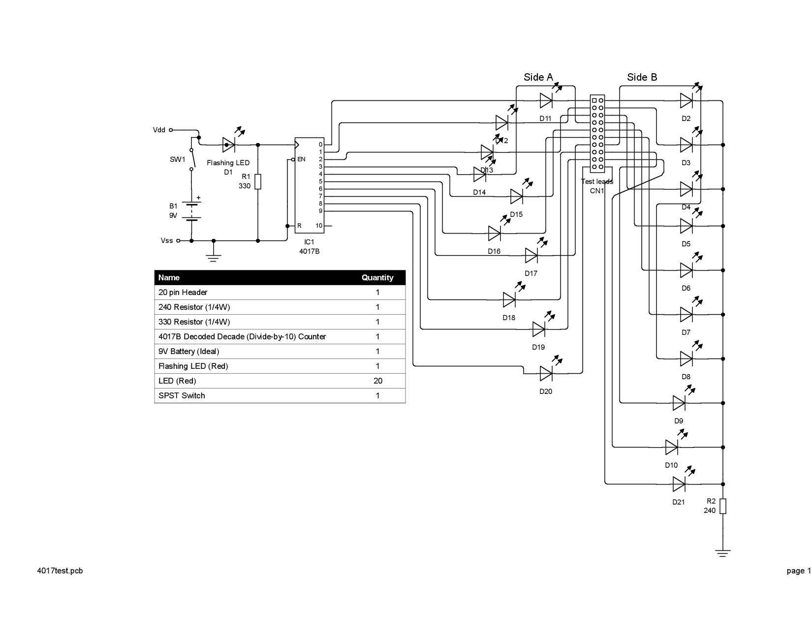 In this blog I will show you two ways to make a cable tester. The 1st way uses a arduino (software controlled). The 2nd way uses a decade counter chip(CD4017) and a flashing LED. I am going to order the Dual RJ45 jack to screw terminals from eBay. The other connectors are from parts-express. I couldn’t find one that would tell you that it has screw terminals on parts-express. But starting from 2 dollars off of eBay you couldn’t go wrong! The screw terminals allows secure connections from other types of cords, such as USB and TV coax, whereas punchdown would not be a good choice. The reason for that is each pin on the RJ45 connector will be tied together with the usb cable, coax and rca cables. This tester will tell you which pin on one side is wired to on the other side, tells you if there’s no connection and tells you about any shorts. I ordered connectors that were attached to a cord so that soldering will be easier. It’s basically a LED chaser with two of LEDs in series one for side a and the other one for side b. You can find the arduino code on github. To use simply connect one side of the cord to side a and the other to side b