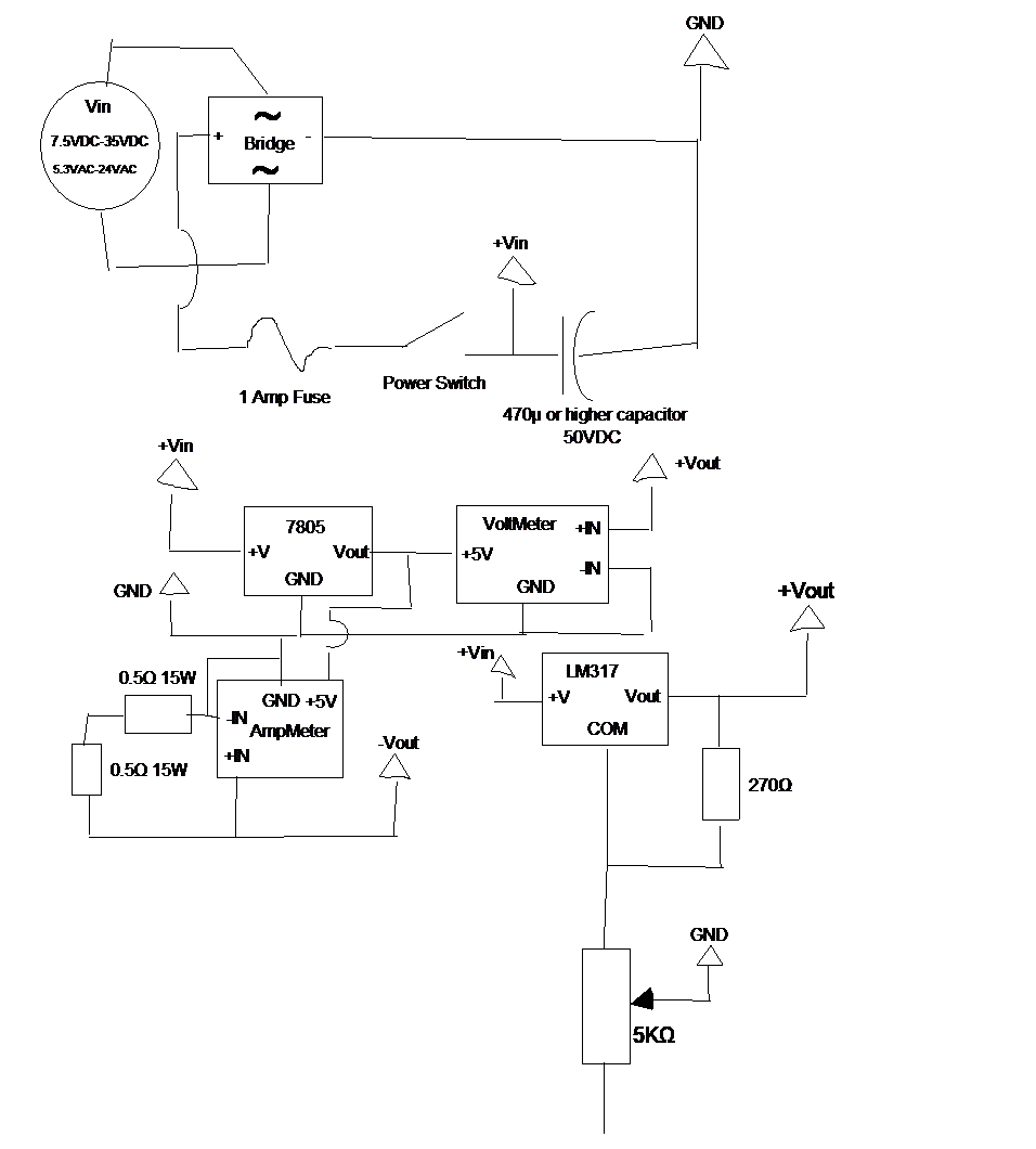 This power supply is easy to build and fun to make. It will have 2 meters 1 for voltage and 1 for current. They will both be DC voltmeters, for the amp meter we will use a shunt resistor.