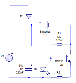 Here is a simple transistor battery charger it can charge batteries up to 12v in series. It has an LED and a few parts.