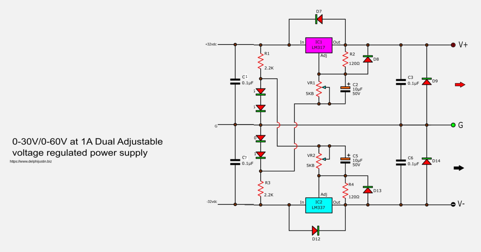 Here’s a type of powersupply you should have. It’s good if you’re dealing with OP amps. I took the circuit from eleccircuit.com and modified it to incorporate 2x printer power supplies instead of an AC transformer. It provides a ground that are both positive and negative. LM317 and LM337 regulators are utilized in this circuit. …